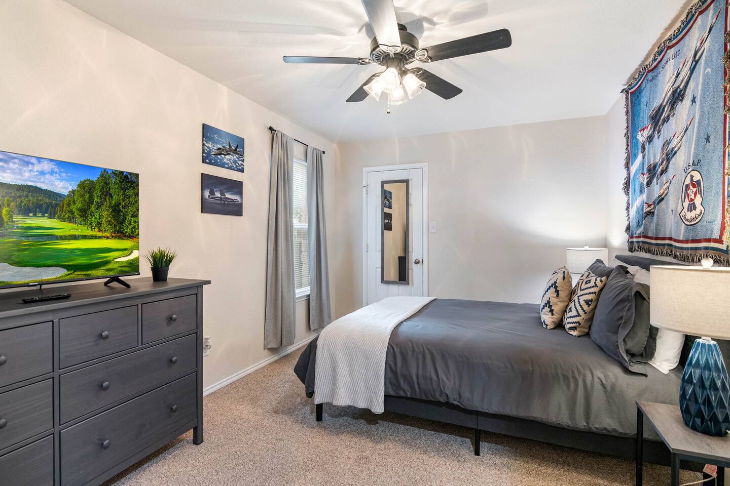 3BR Spacious home features: - 5-minute drive to Lackland - KING size bed w/on-suite - QUEEN size airman room - TWIN size bunk bed Sea World room - SMART TV in each room - In unit washer/dryer - High-speed internet - Dedicated work area - Foosball table - FREE parking - Fire pit - 24/7 virtual assistant ***ASK US ABOUT SEASONAL DISCOUNTS***